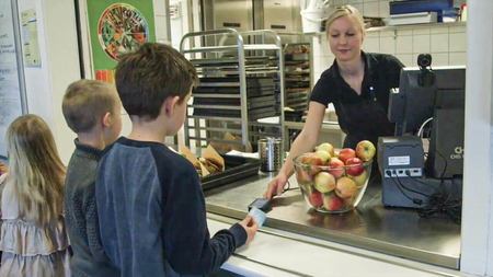Effektiv betjening og mindre kø ved kassen betyder også, at børnene hurtigere kan komme i gang med at spise frokost, i stedet for at bruge halvdelen af deres pause på at stå i kø til betaling.